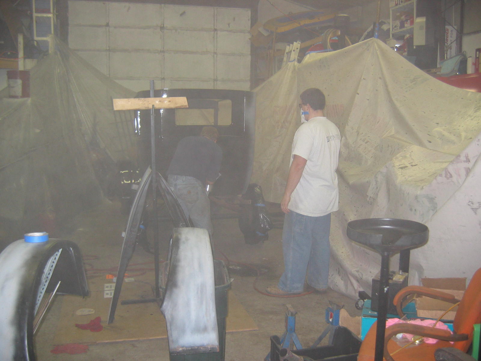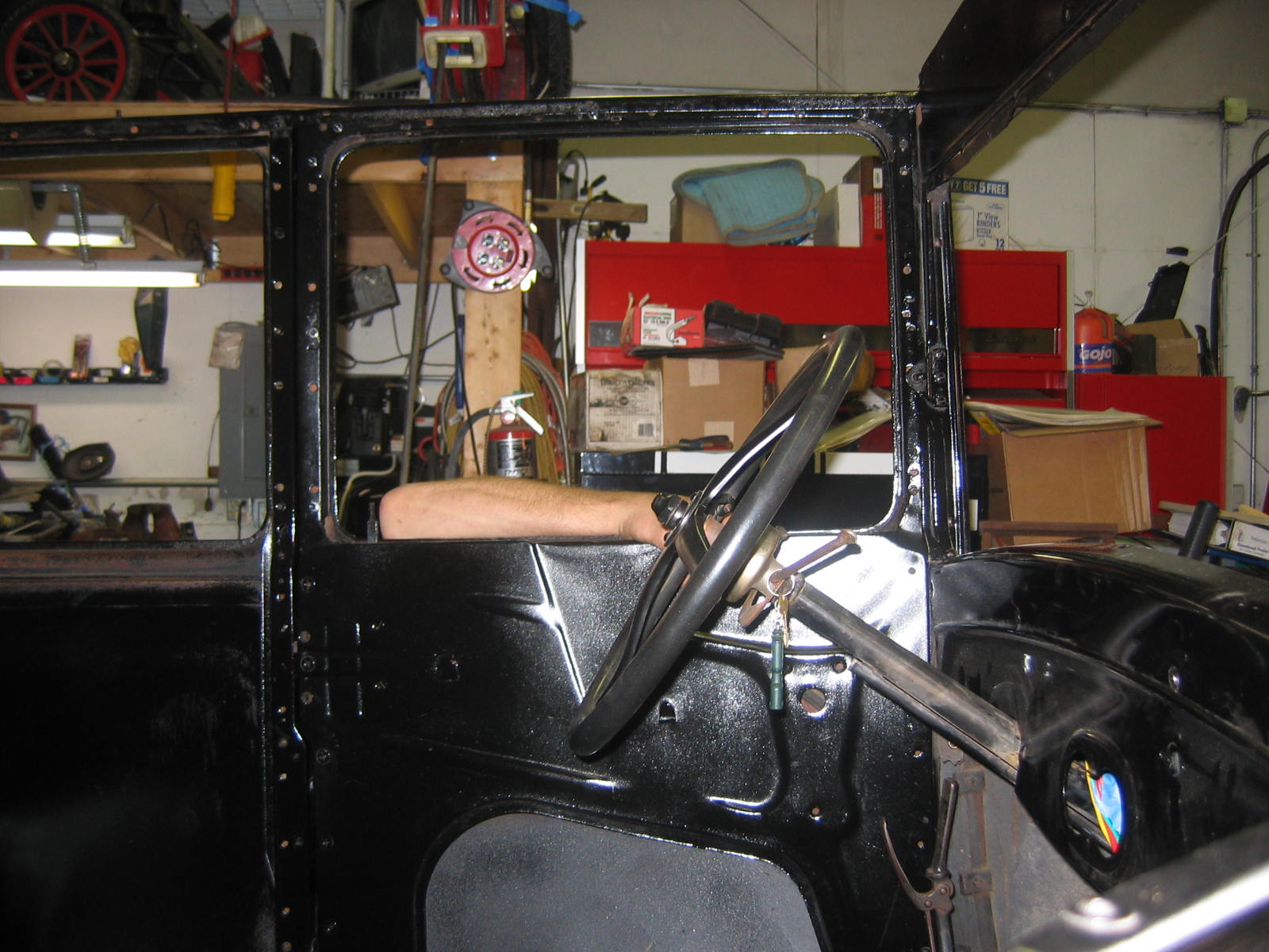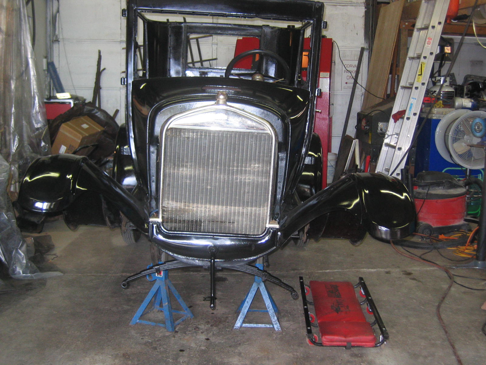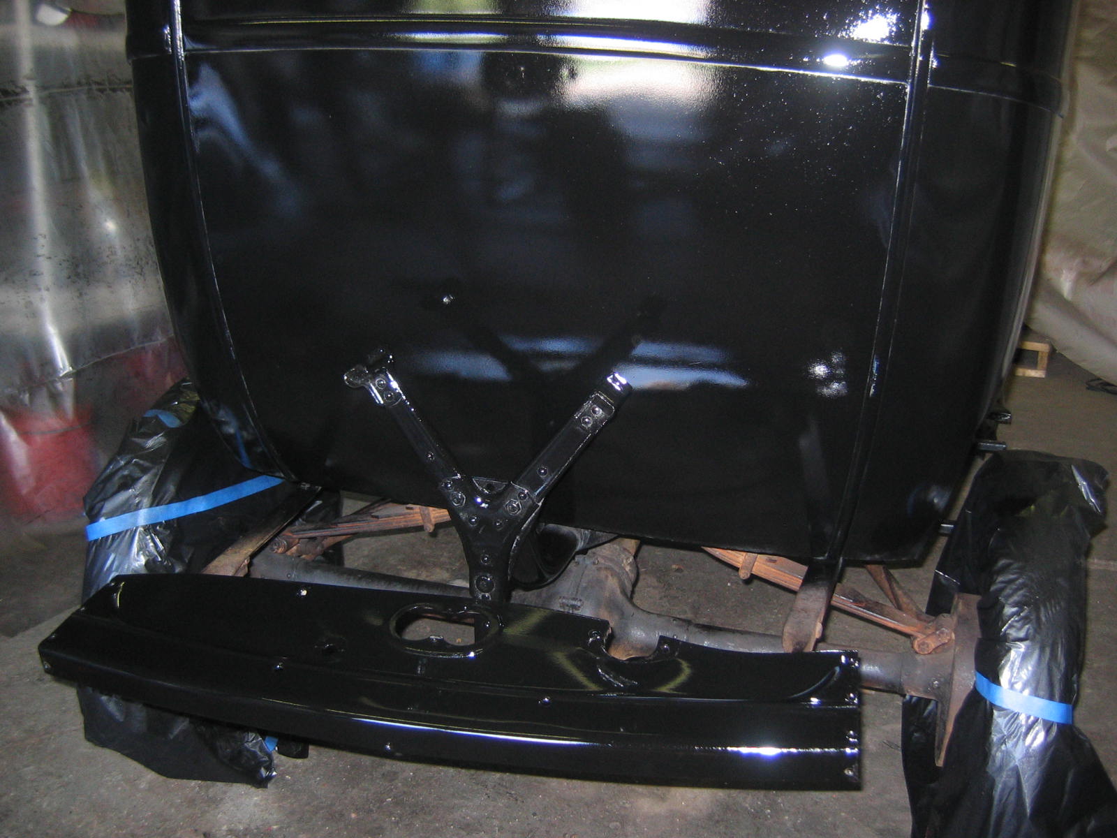 Its not perfect but did Mr. Ford have it perfect? I don't think so... he used a hose to apply paint, we used a spray gun. The paint used was implement- or tractor paint. Who's going to know except us? Black is black is black. Thanks to Kevin and Dana Olson for always helping out! We love you guys.