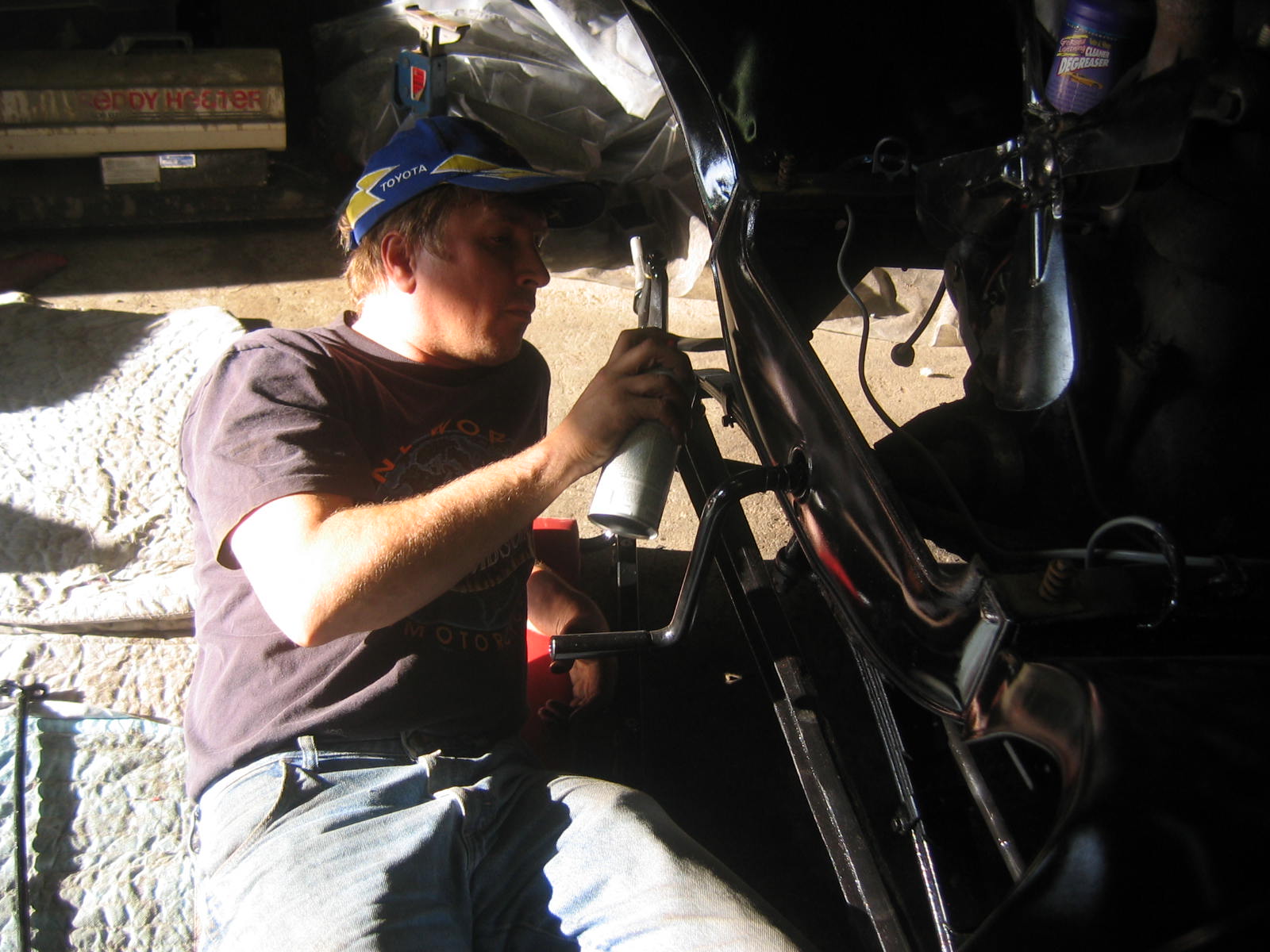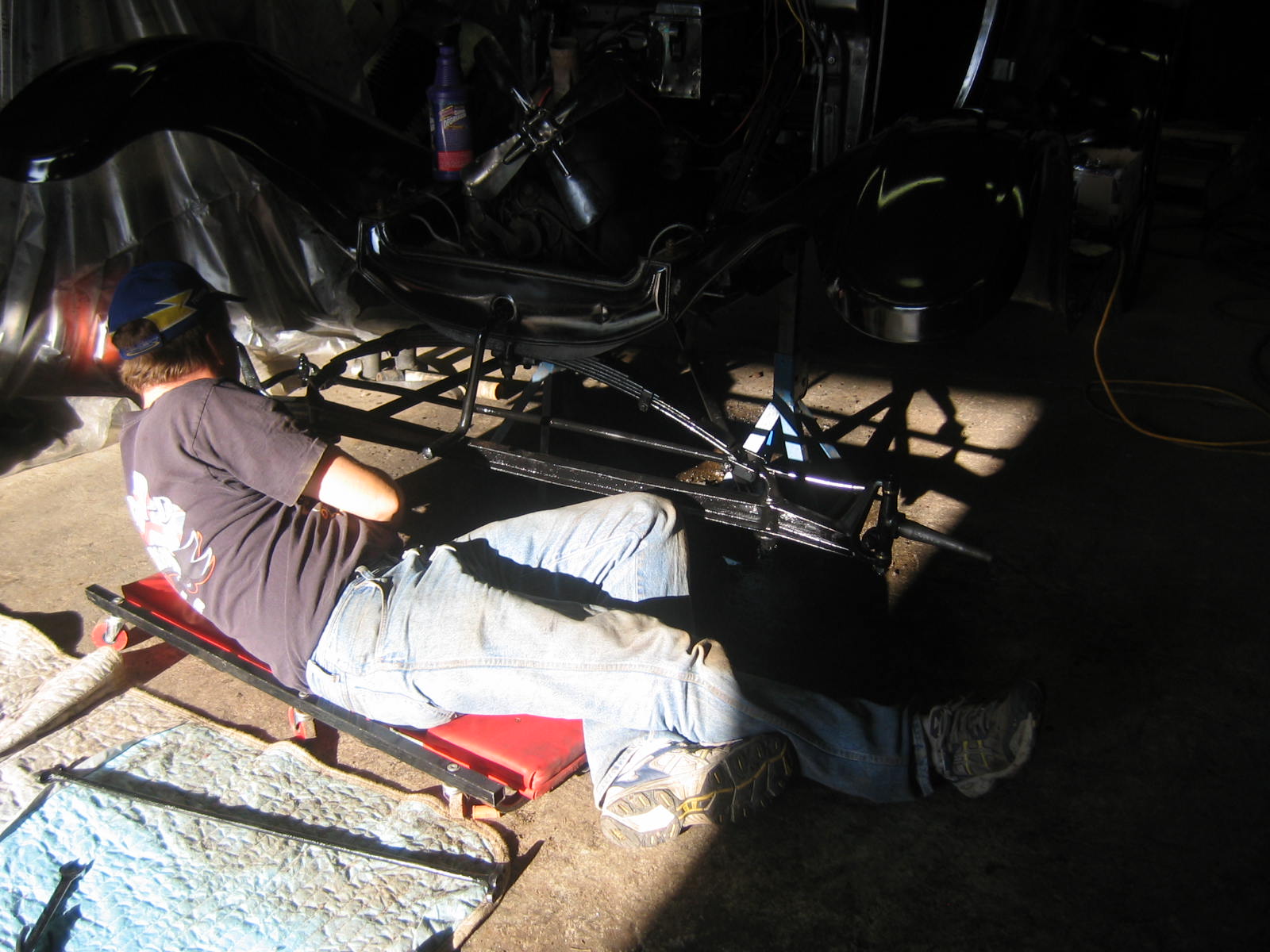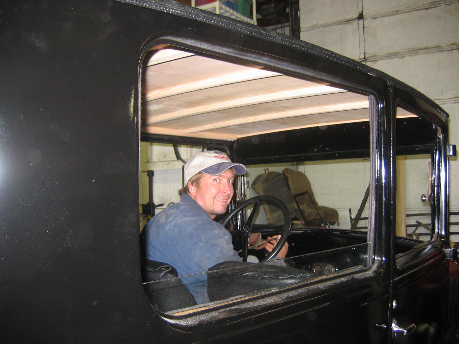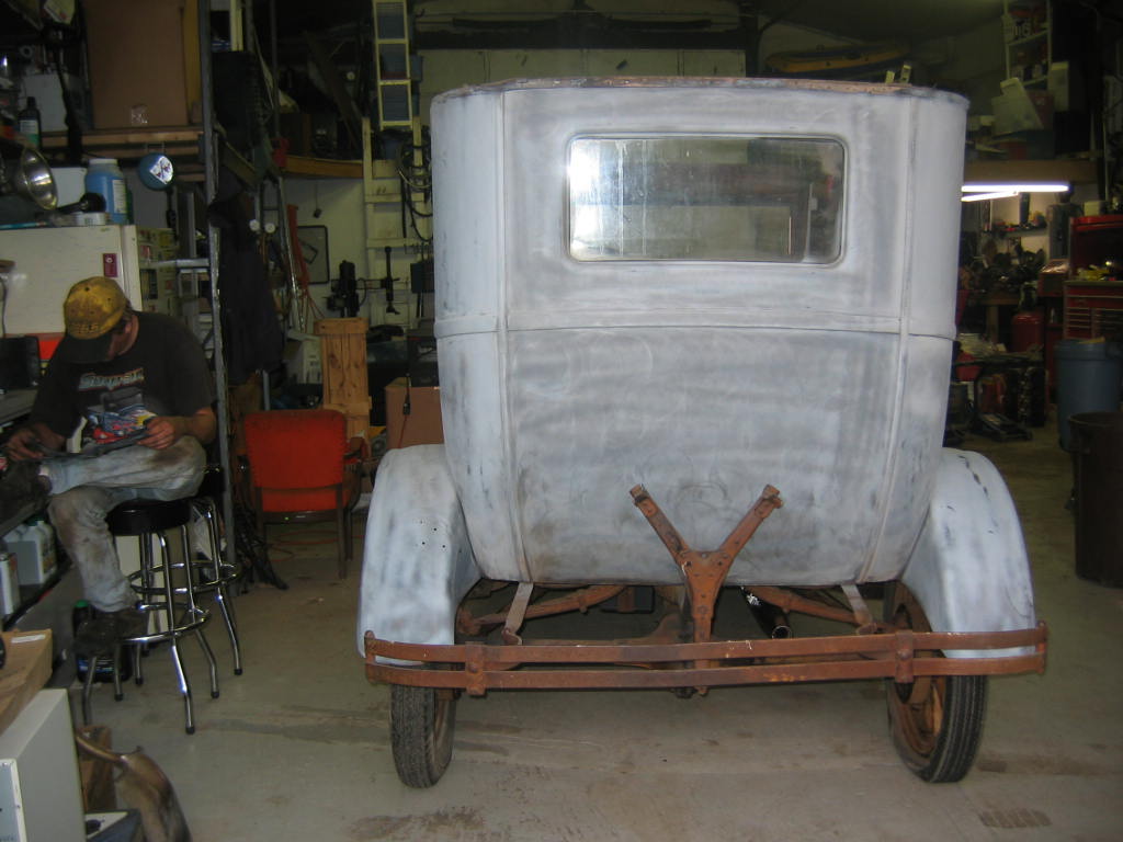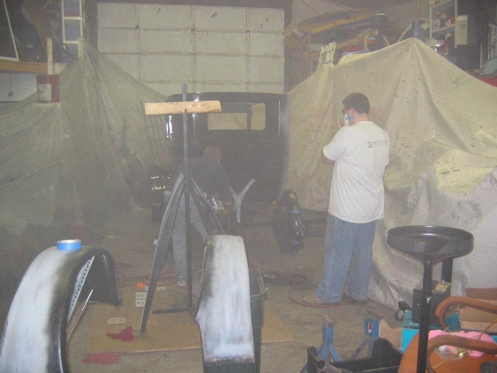 Its not perfect but did Mr. Ford have it perfect? I don't think so... he used a hose to apply paint, we used a spray gun. The paint used was implement- or tractor paint. Who's going to know except us? Black is black is black. Thanks to Kevin and Dana Olson for always helping out! We love you guys.