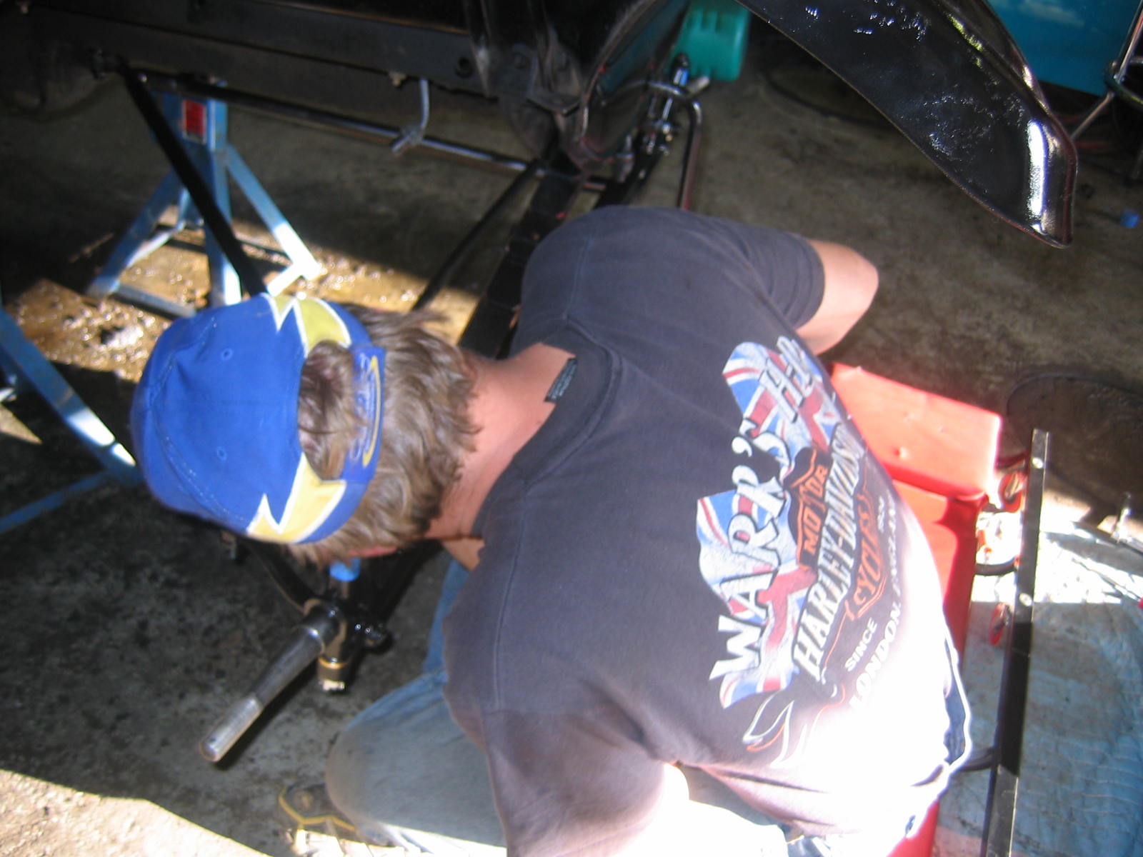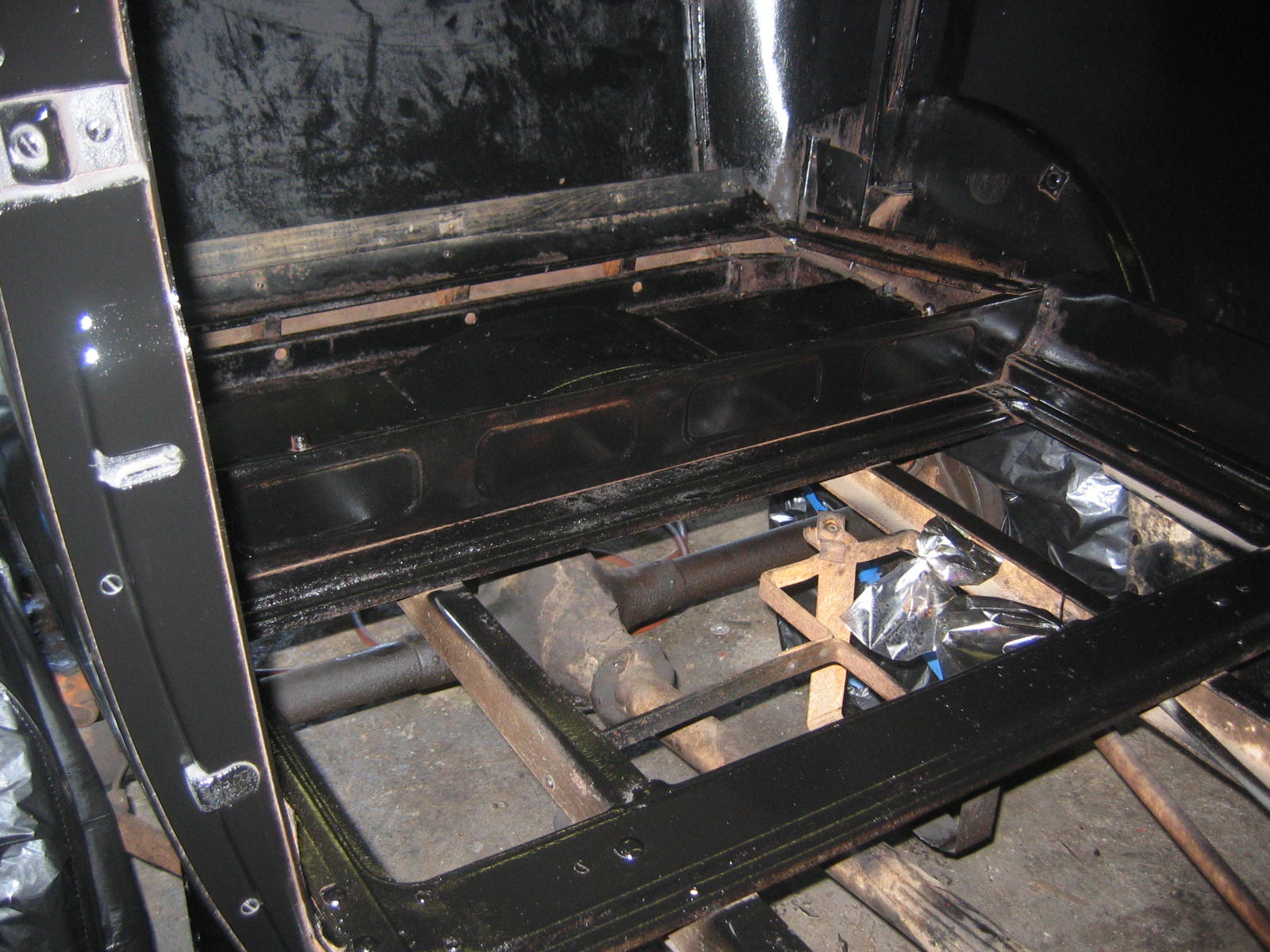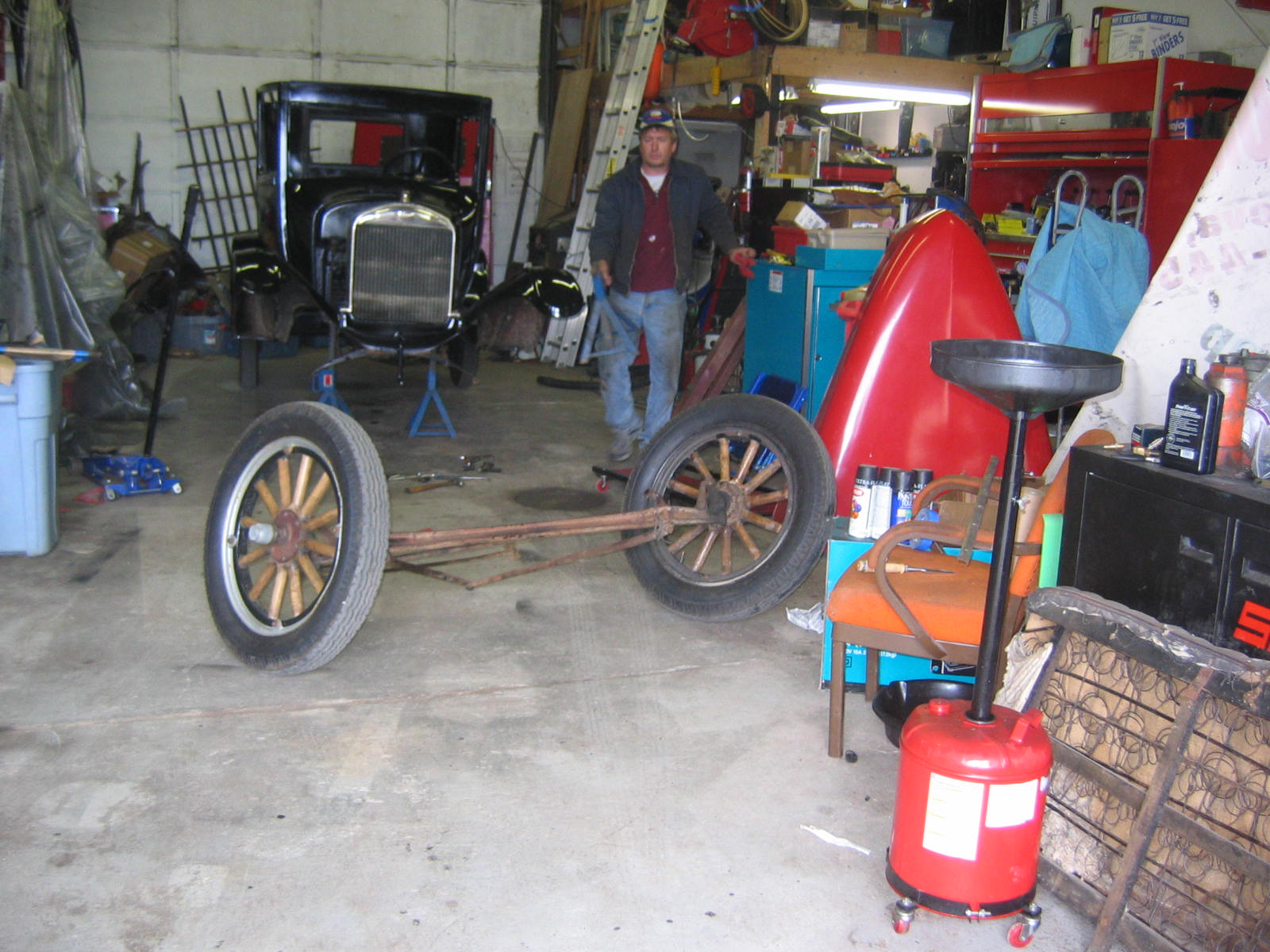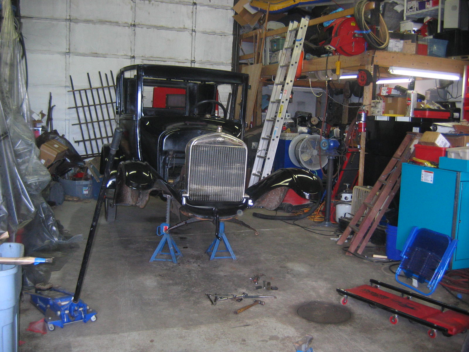 Its not perfect but did Mr. Ford have it perfect? I don't think so... he used a hose to apply paint, we used a spray gun. The paint used was implement- or tractor paint. Who's going to know except us? Black is black is black. Thanks to Kevin and Dana Olson for always helping out! We love you guys.