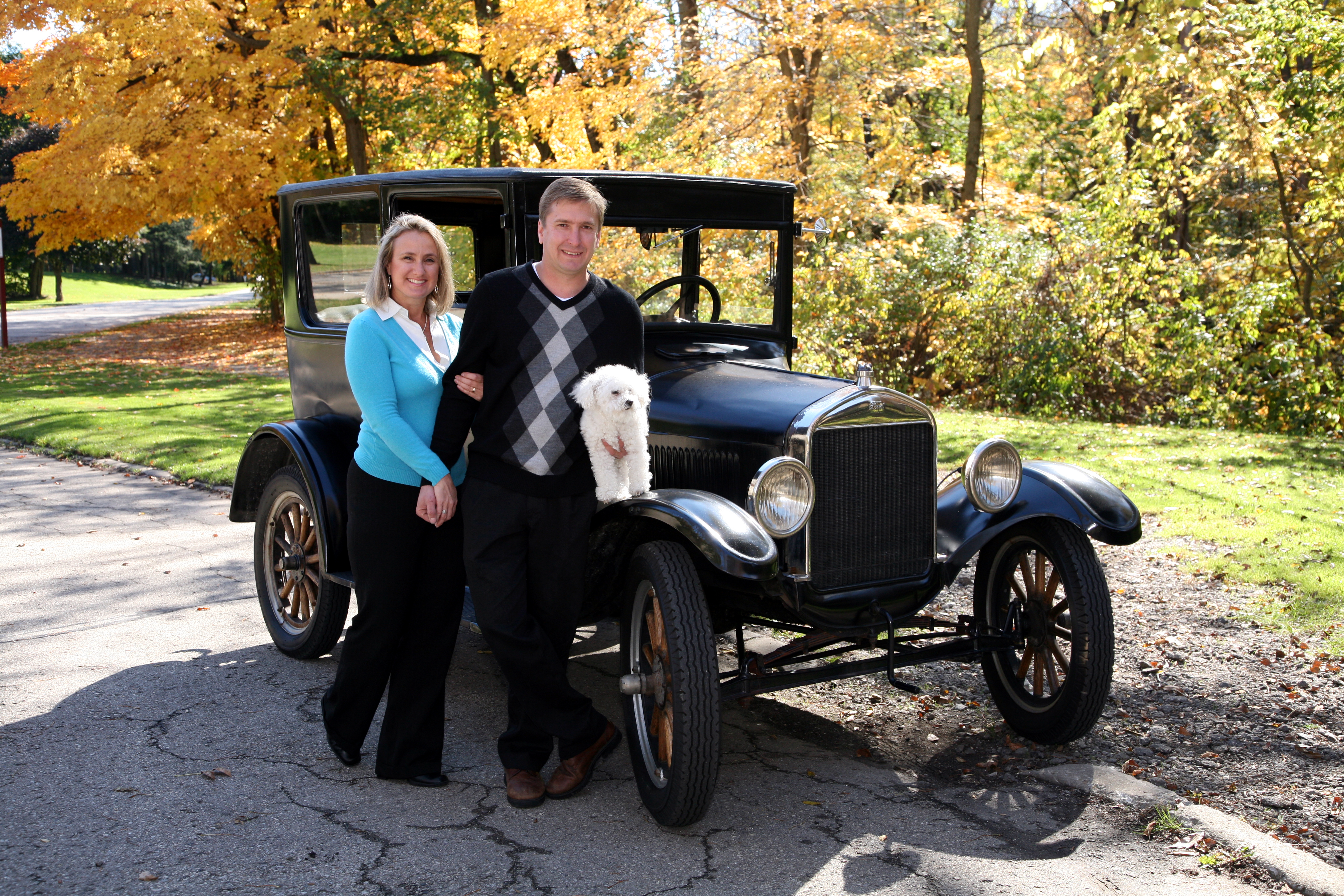 October 2008. Dave, Andrea and P-nut out for a T drive in this lovely fall weather.