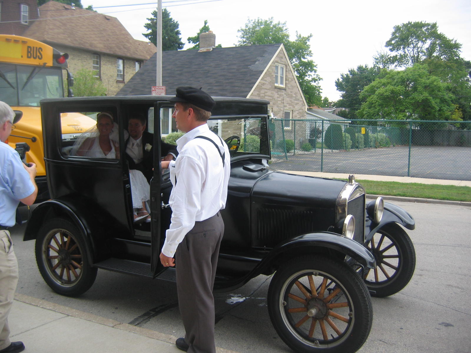 Toby successfully transported the beautiful bride and groom to their destinations. Dave was the handsome chauffeur.
