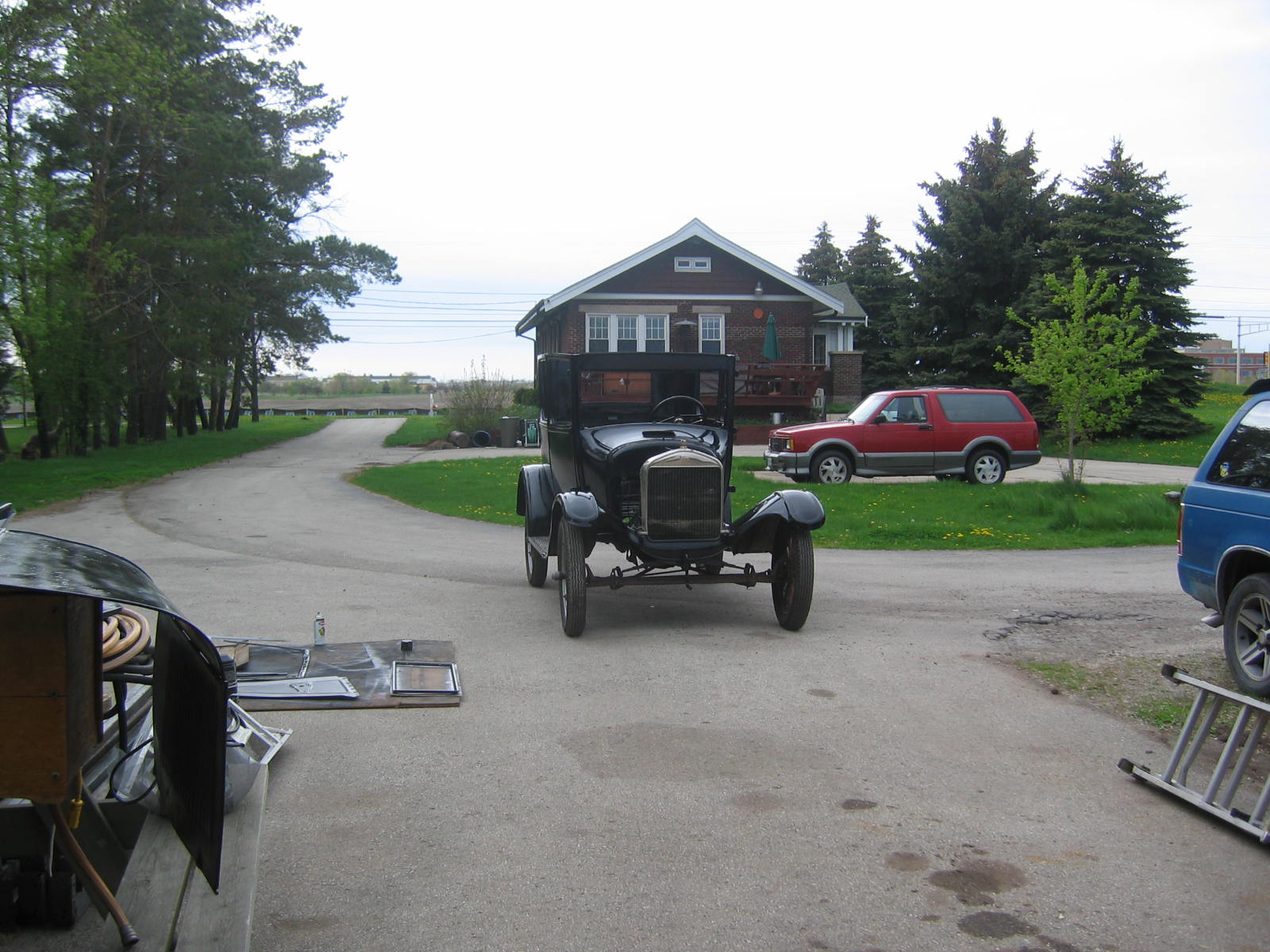 Sunday, March 11th. What a beautiful day to take a ride in a T. We tooled around Sturtevant and Mt. Pleasant and people just waved and gawked and even got a thumbs up a few times. Needless to say, after all this talk about t's and taking one through the McDonalds drive through (a first for them and us) we were truly inspired to work on ours... See our photos and video below. Click on the photos to enlarge.